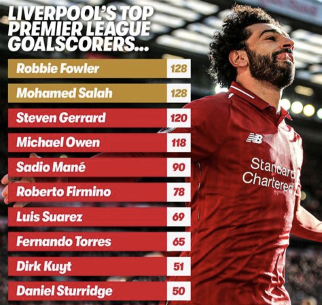 4. 프리미어리그 역대 득점 순위에서의 살라의 위치